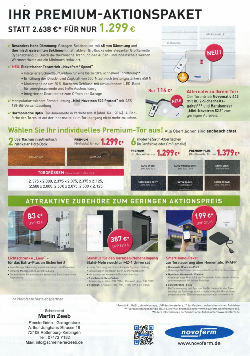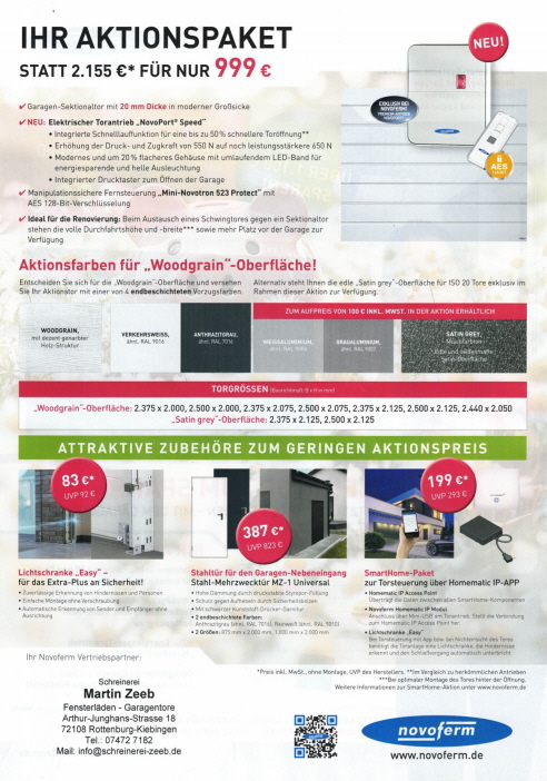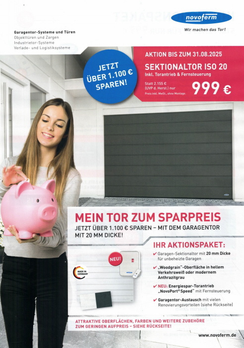 Aktion von Sektionaltore und Zubehör der Firma Novoferm.